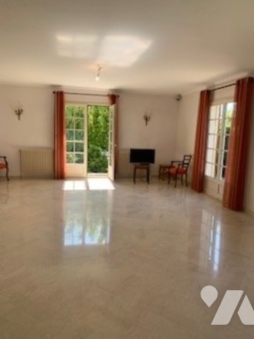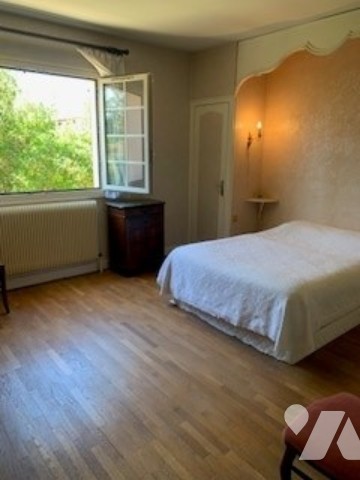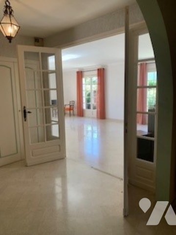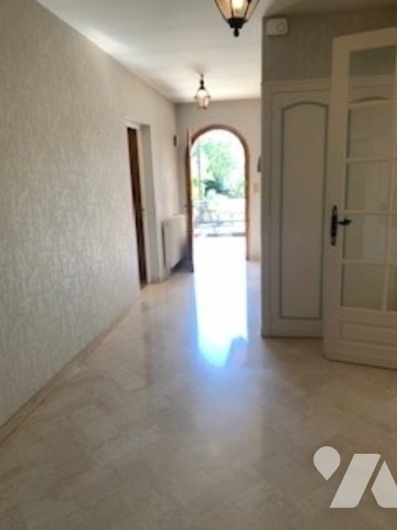 Dans quartier résidentiel, grande et lumineuse maison comprenant sur sous-sol complet, au rez-de-chaussée surélevé entrée, lumineux salon- séjour donnant sur terrasse, cuisine, 3 chambres, salle de bains, wc. A l'étage : chambre, bureau, salle d'eau avec wc et partie grenier à aménager.